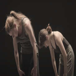 ` In “Into the blue”, the Belgian choreographer, together with the dancer Jill Kupers, stages the state of insomnia of two young women. Insomnia has often affected the life and even limited the art of Danielle Huyghe. In this work of dance and cinema, the dreamlike dimension is given by the images of the film "L'Heure bleu", made by the choreographer herself.